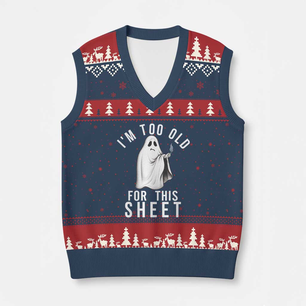 Rushgleam Ghost I’m Too Old For This Sheet V-Neck Knit Sweater Vest Weird Ghost Gift For Your Child