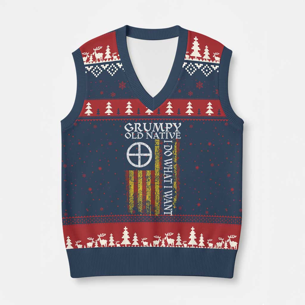 Rushgleam Grumpy Old Native Ugly Christmas V-Neck Knit Sweater Vest Native American Clothes For Mom