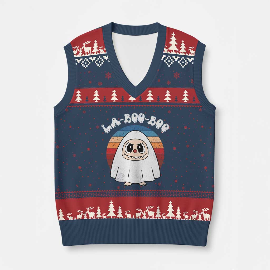 Rushgleam Halloween Costume V-Neck Knit Sweater Vest Spooky Trending Cartoon La Boo Boo Gift For Girls