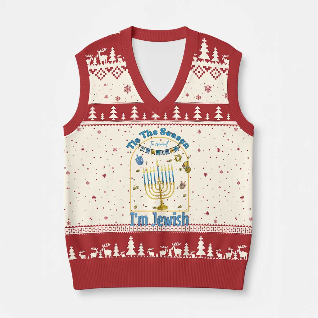 Rushgleam Hanukkah Ugly Christmas V-Neck Knit Sweater Vest Tis The Season I’m Jewish Gift For Girl
