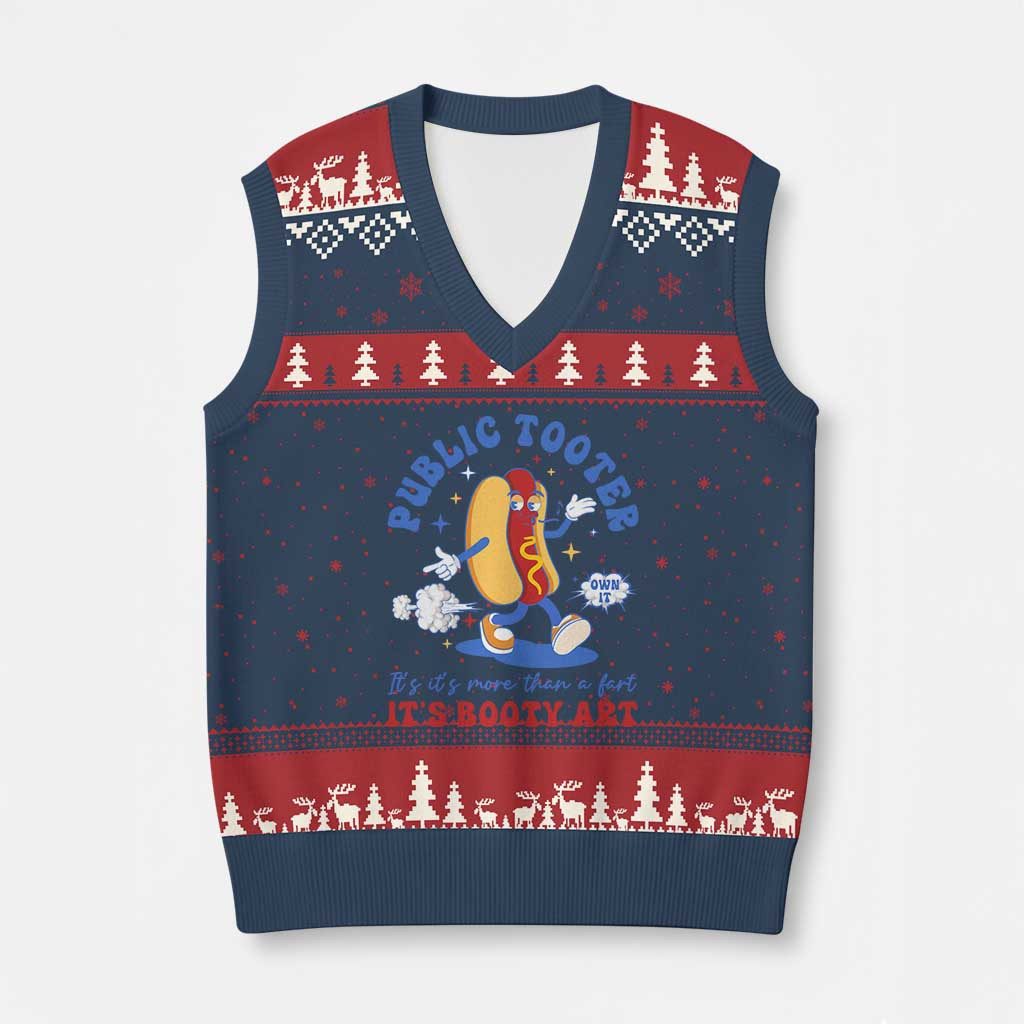 Rushgleam Hotdog Public Tooter Ugly Christmas V-Neck Knit Sweater Vest Ridiculous Gift For Adults