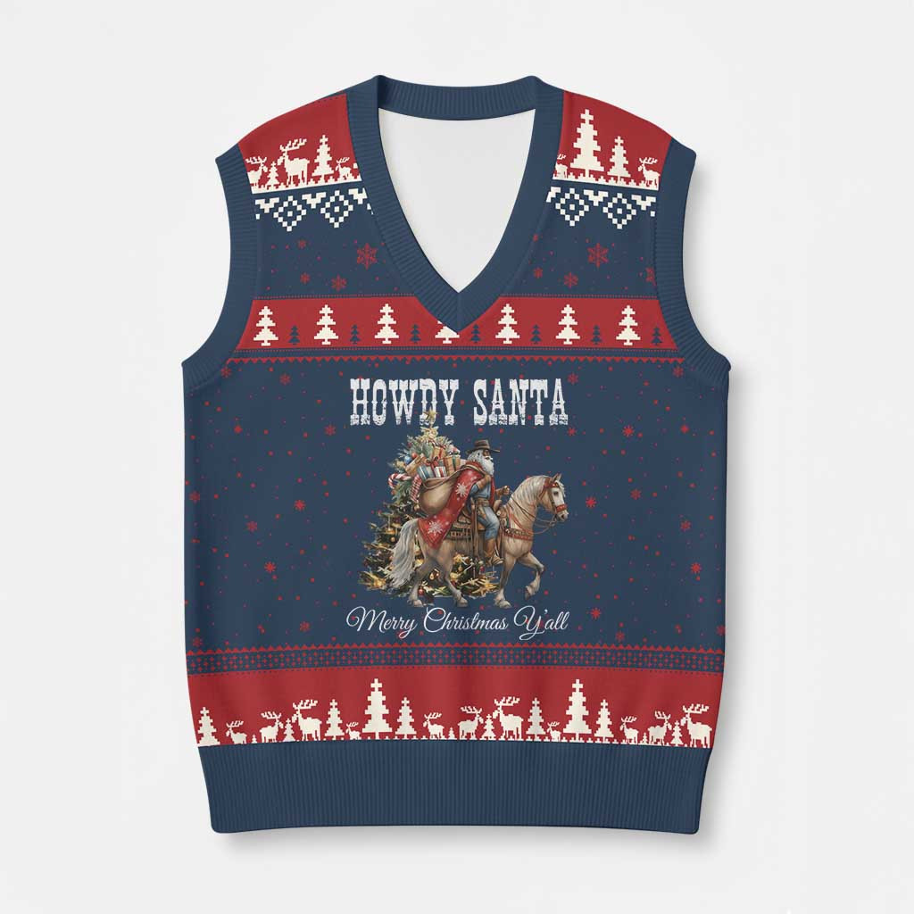 Rushgleam Howdy Santa Ugly Christmas V-Neck Knit Sweater Vest African American Western Cowboy Gift