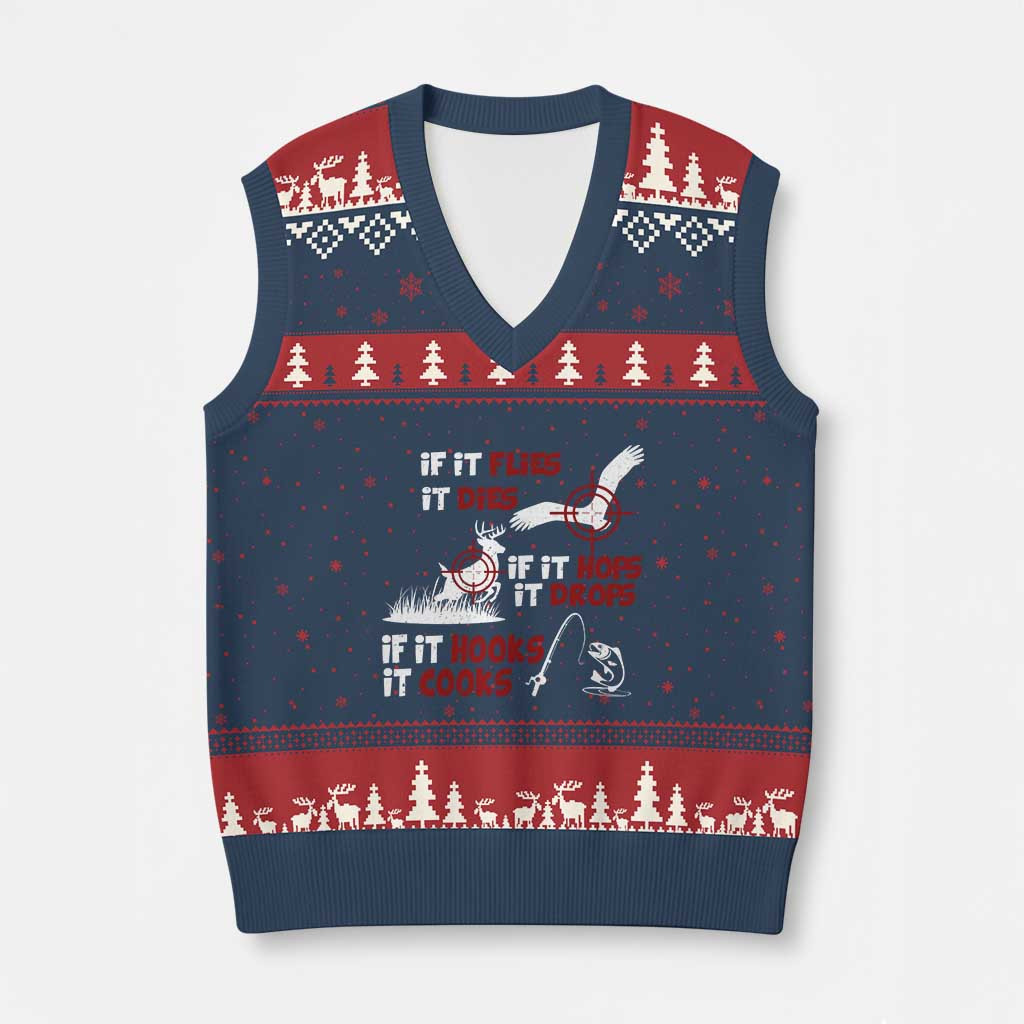 Rushgleam Hunting Ugly Christmas V-Neck Knit Sweater Vest Unique Xmas Gift Clothing For Hunter