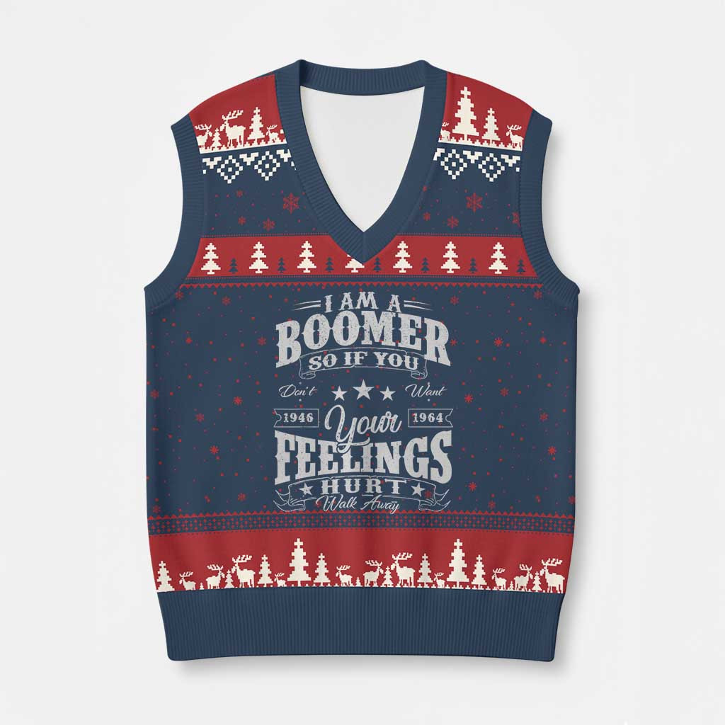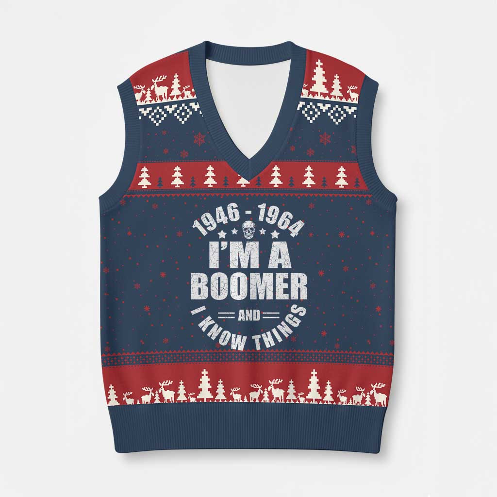 Rushgleam I Am A Boomer Ugly Christmas V-Neck Knit Sweater Vest Good Gift For Your Husband Xmas