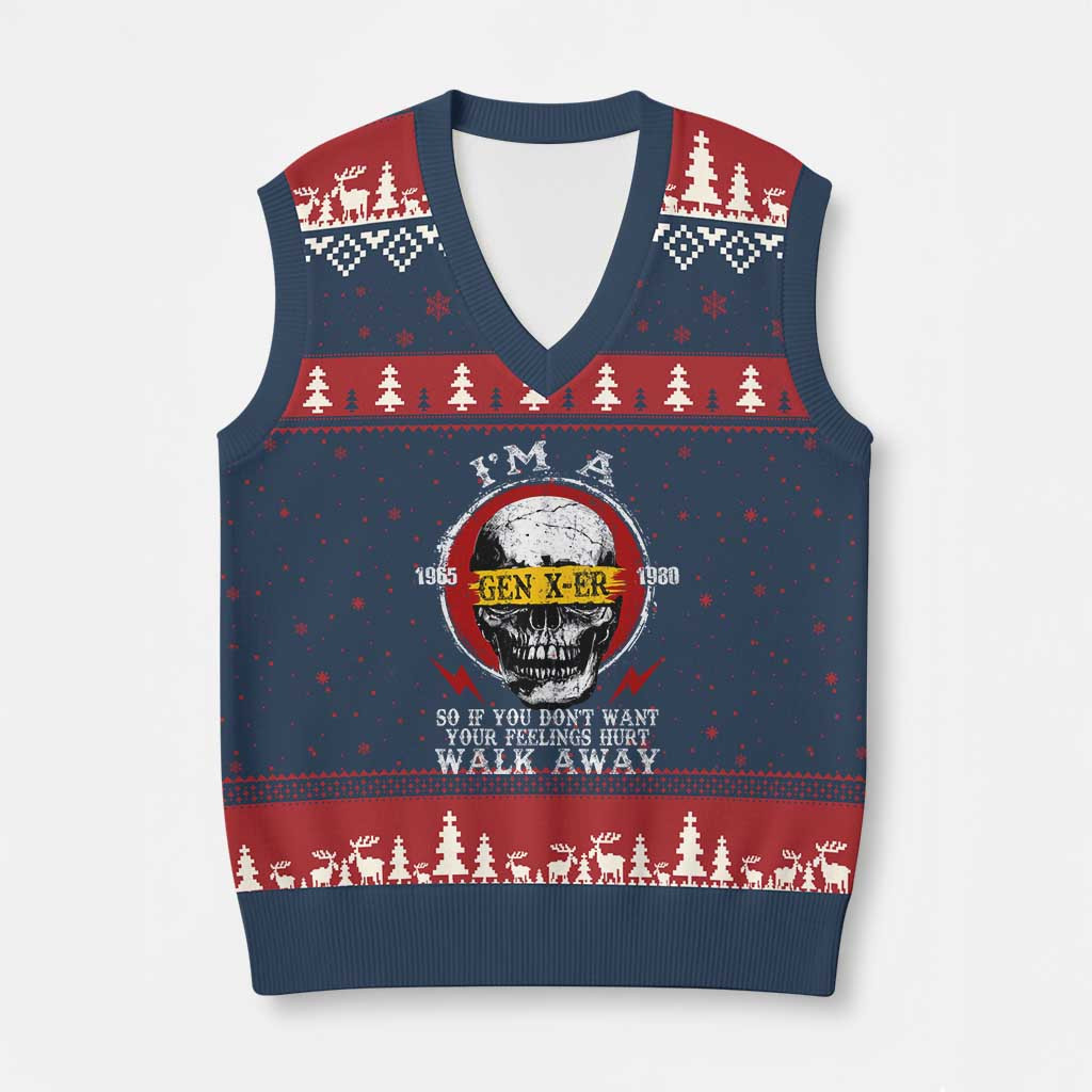 Rushgleam I Am A Gen X-er Ugly Christmas V-Neck Knit Sweater Vest Vintage Skull Gift For Your Sister