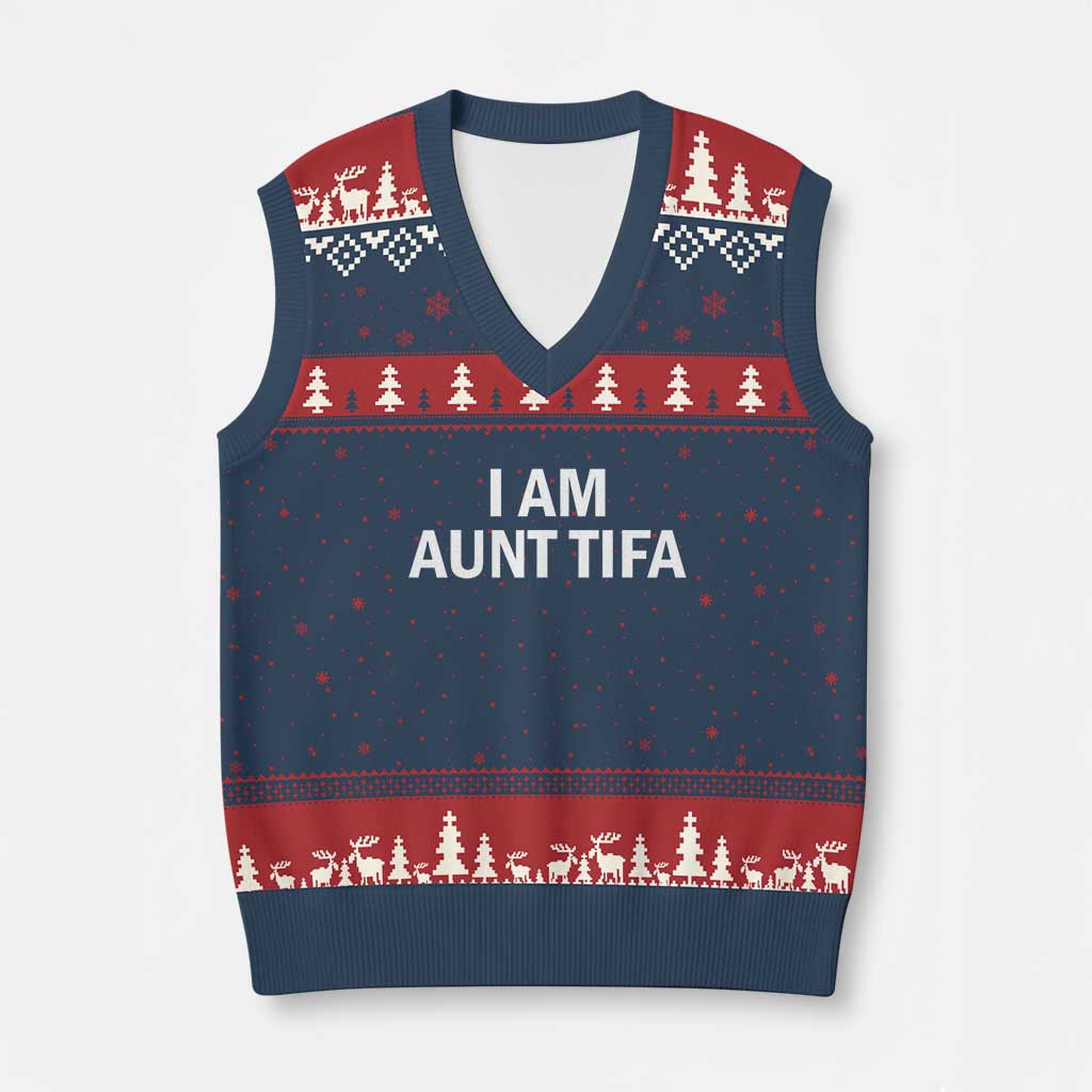 Rushgleam I Am Aunt Tifa Ugly Christmas V-Neck Knit Sweater Vest Political Satire Gift For Relatives