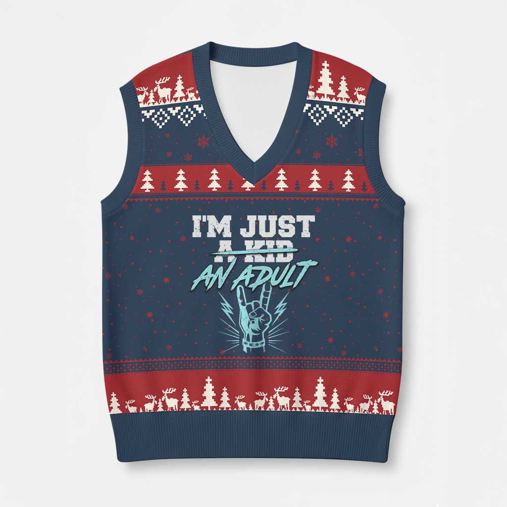 Rushgleam I Am Just A Kid Ugly Christmas V-Neck Knit Sweater Vest Funny Adulthood Saying Gift For Him