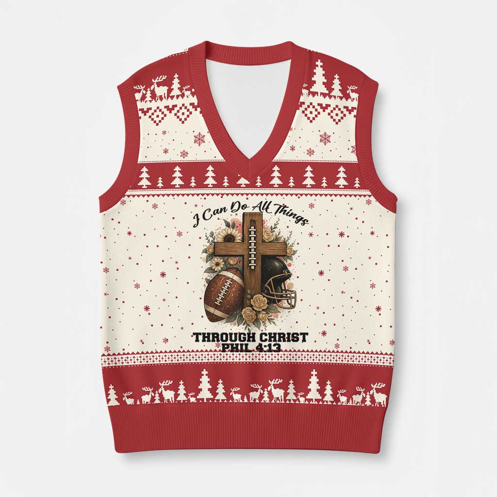 Rushgleam I Can Do All Things Through Christ Ugly Christmas V-Neck Knit Sweater Vest Christian Gift