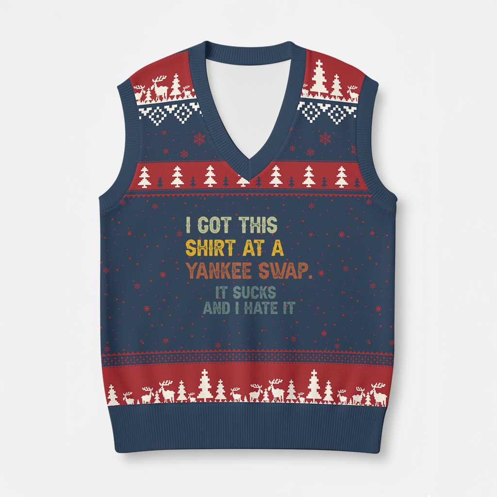 Rushgleam I Got This Shirt At A Yankee Swap Ugly Christmas V-Neck Knit Sweater Gift Exchange Ideas