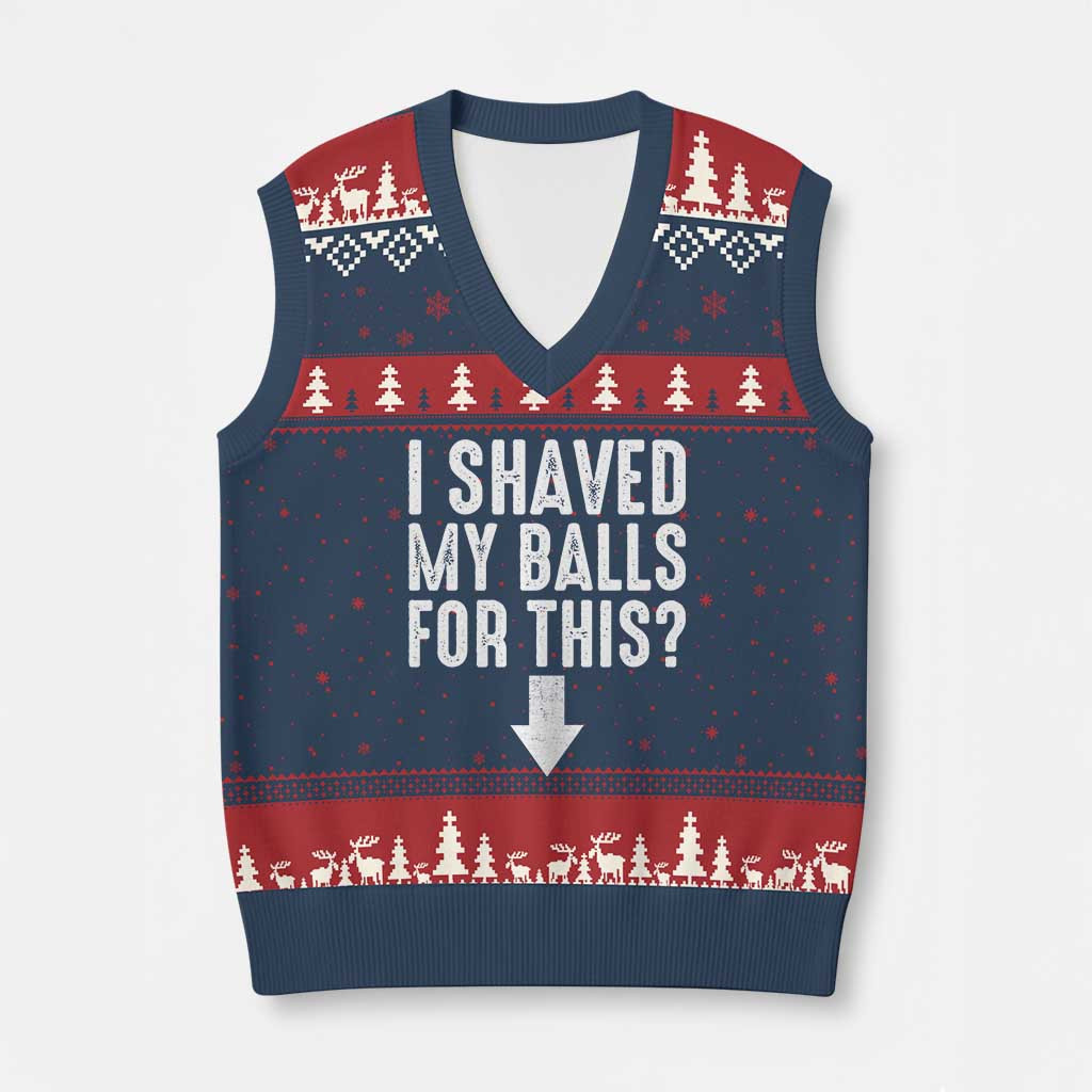 Rushgleam I Shaved My Balls For This Ugly Christmas V-Neck Knit Sweater Vest Hilarious Adult Gift