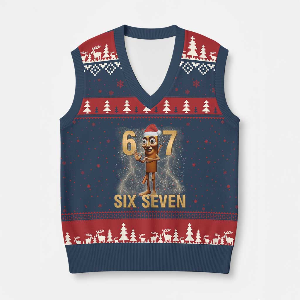 Rushgleam Italian Brainrot 67 Six Seven Ugly Christmas V-Neck Knit Sweater Funny Xmas Gift For Kid