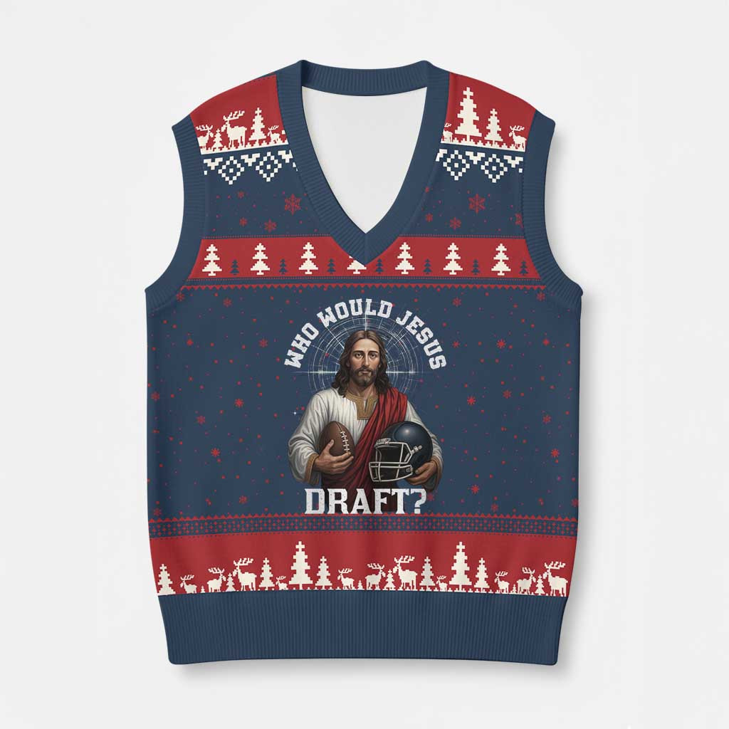 Rushgleam Jesus Who Would Jesus Draft Ugly Christmas V-Neck Knit Sweater Vest Football Gift For Him