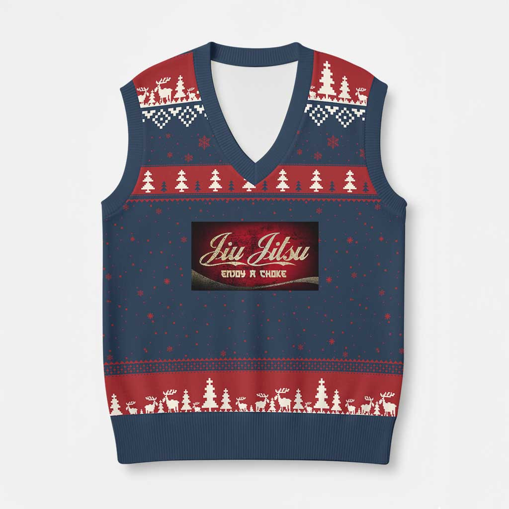 Rushgleam Jiu Jitsu Enjoy Ugly Christmas V-Neck Knit Sweater Vest Martial Arts Gifts For Husband