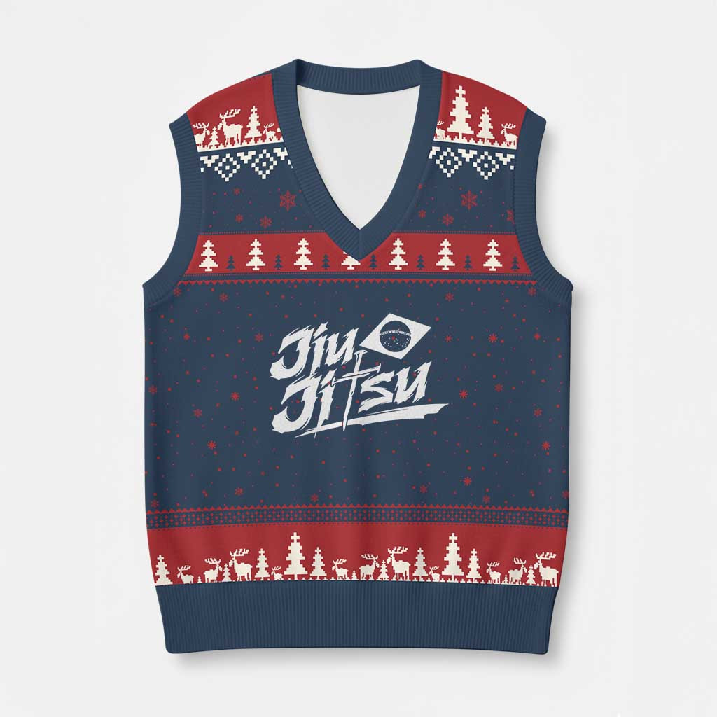 Rushgleam Jiu Jitsu Ugly Christmas V-Neck Knit Sweater Vest Brazilian Gift For Martial Arts Lovers