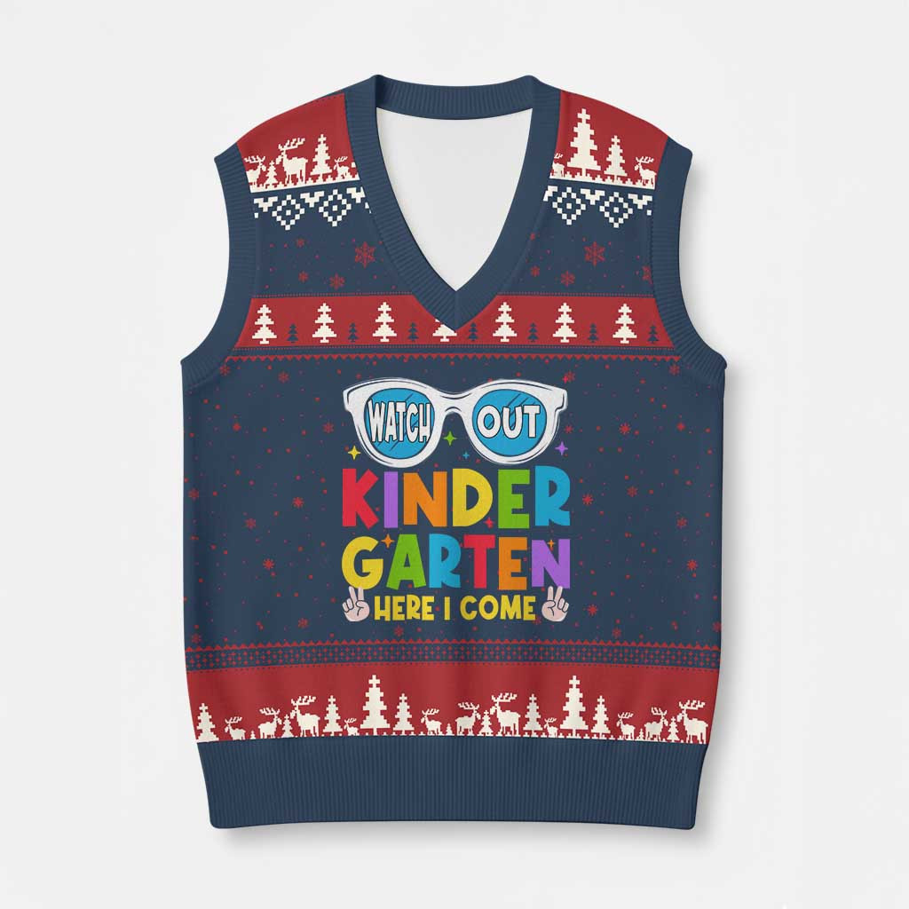 Rushgleam Kindergarten Here I Come Ugly Christmas V-Neck Knit Sweater Vest Funny Back To School Gift