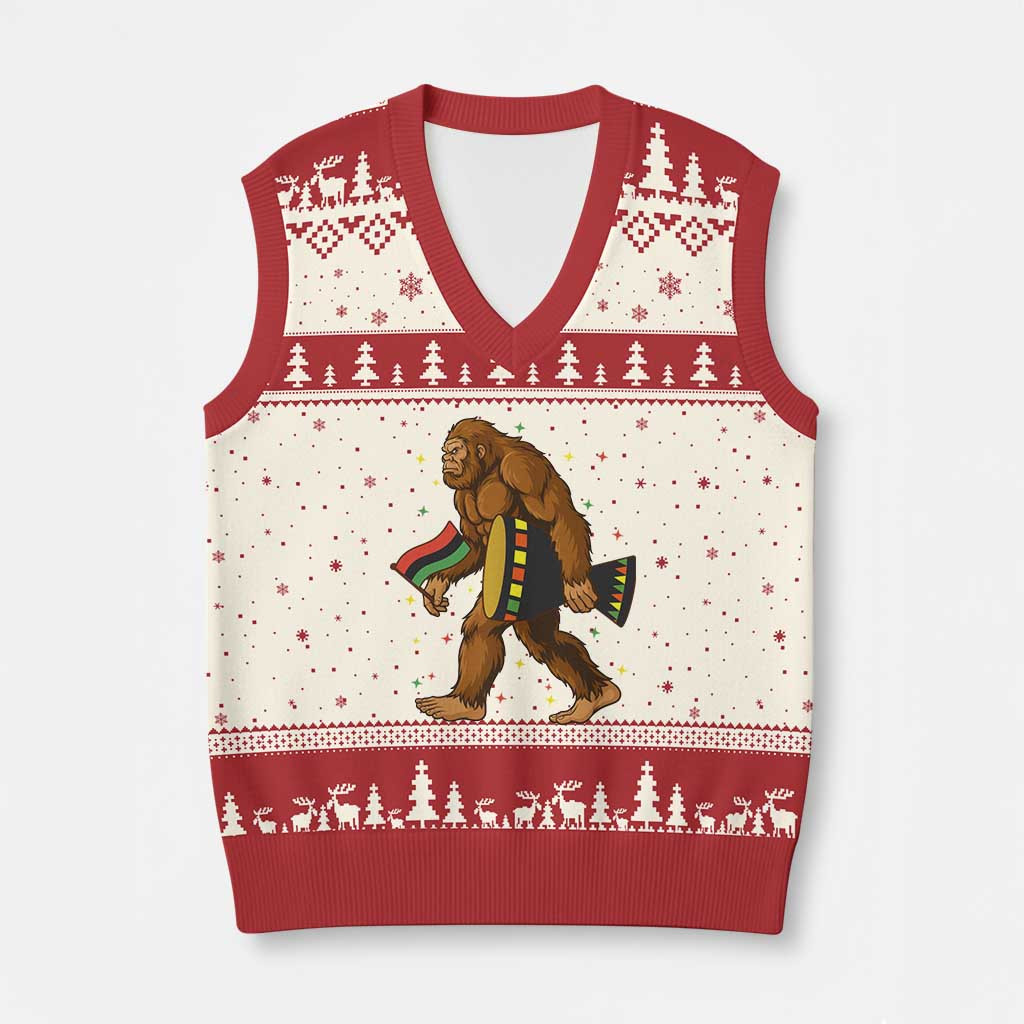 Rushgleam Kwanzaa Bigfoot Ugly Christmas V-Neck Knit Sweater Vest African American Holiday Gift Ideas