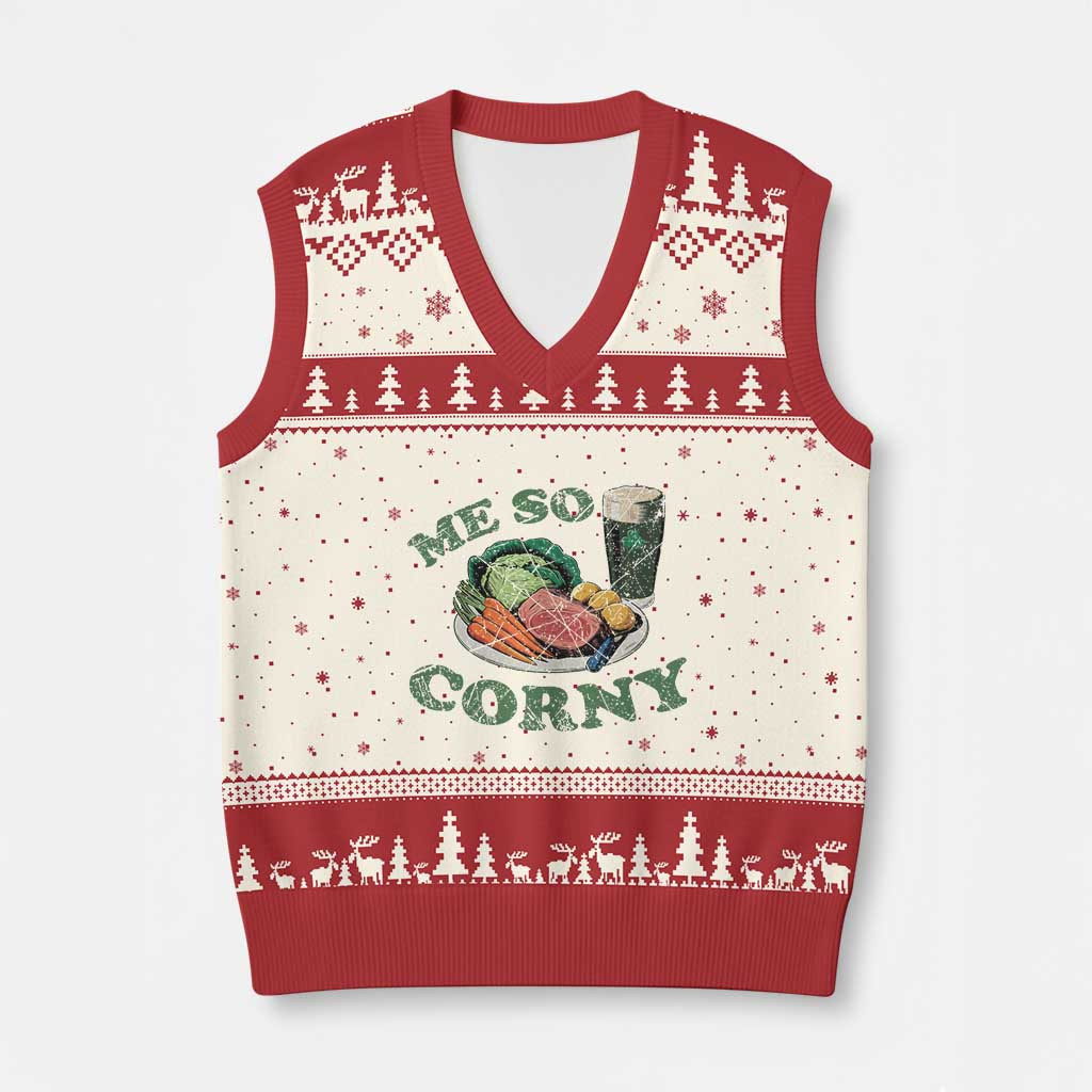 Rushgleam Me So Corny Ugly Christmas V-Neck Knit Sweater Vest St Patrick’s Day Drinking Gift For Bro