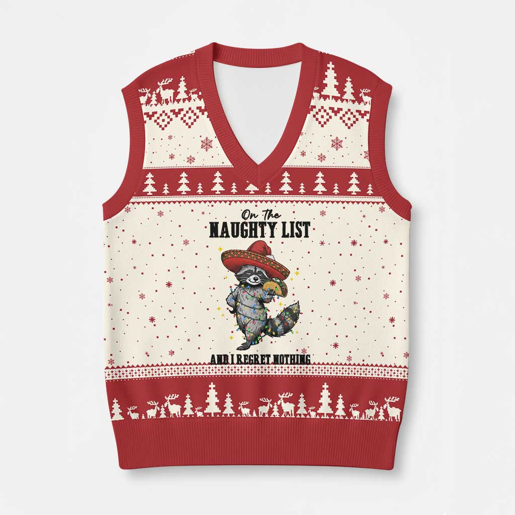 Rushgleam Raccoon On The Naughty List Ugly Christmas V-Neck Knit Sweater Vest Gift For Taco Lover