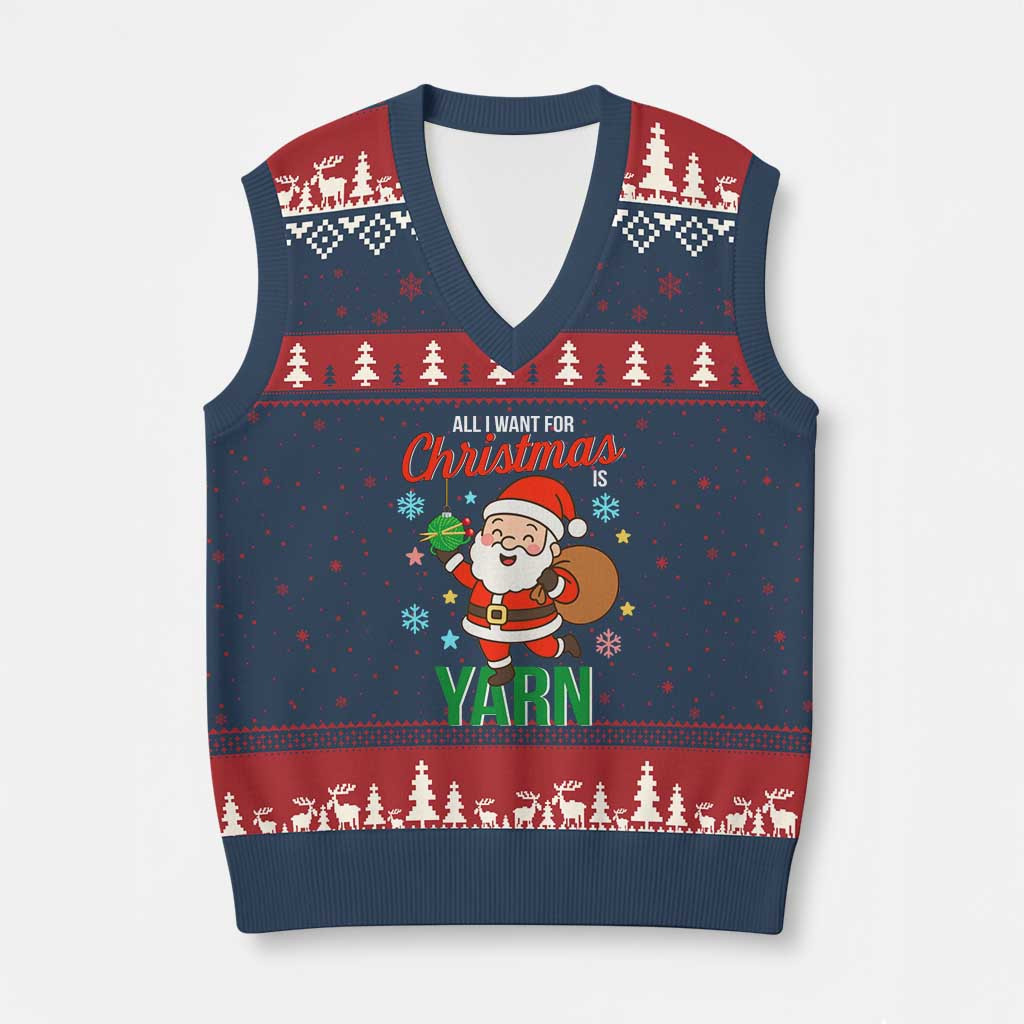 Rushgleam Santa All I Want For Xmas Is Yarn Ugly Christmas V-Neck Knit Sweater Knitting Gift For Kid