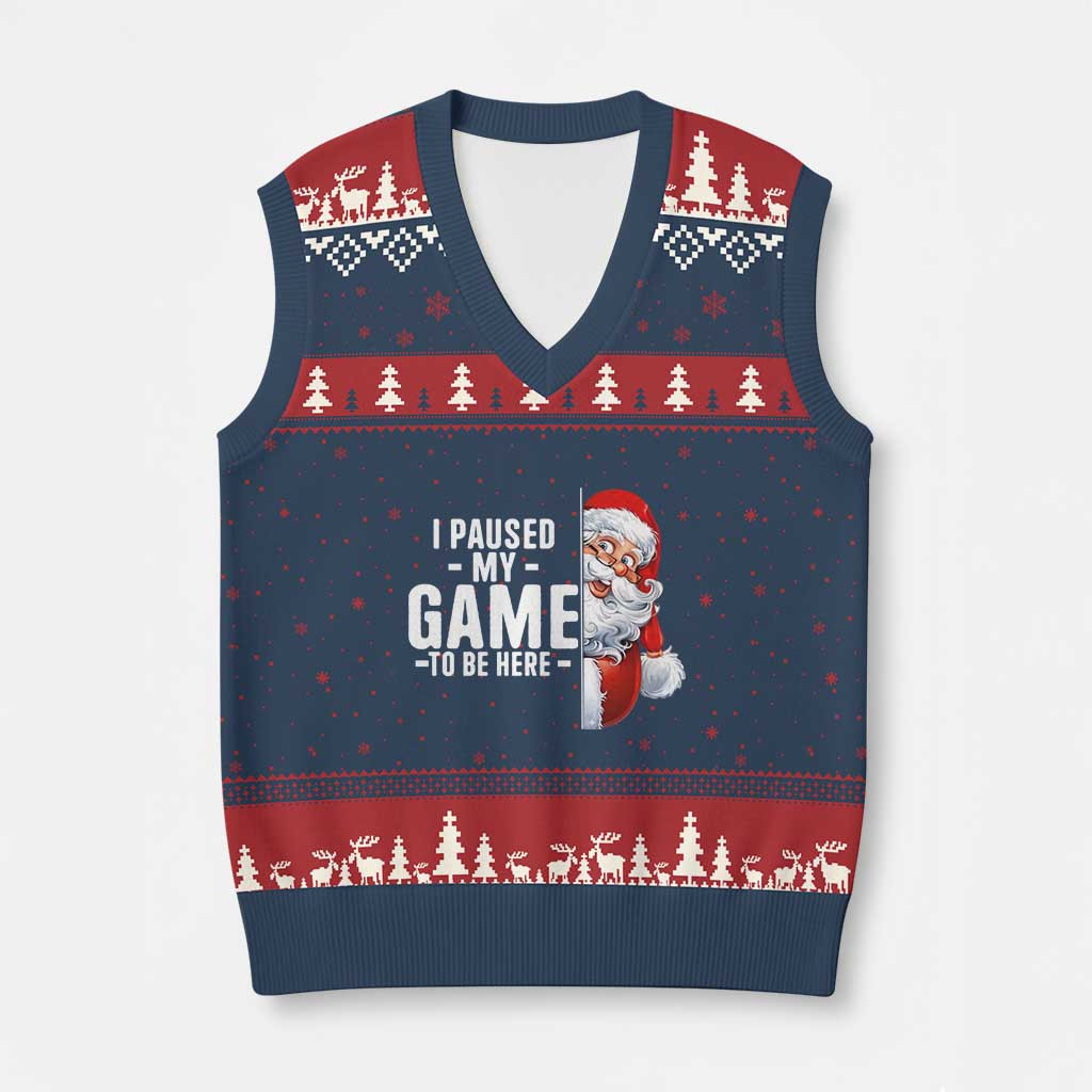 Rushgleam Santa Gamer Ugly Christmas V-Neck Knit Sweater Vest I Paused My Game To Be Here Gift For Kid