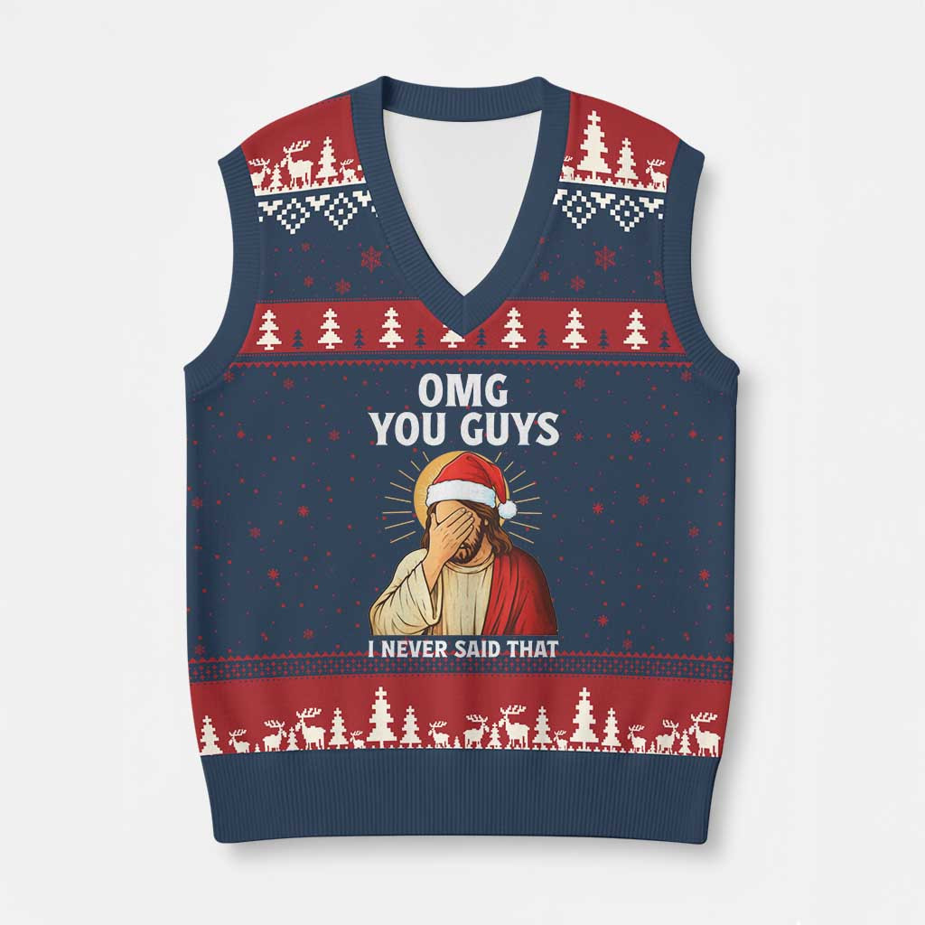 Rushgleam Santa OMG You Guys I Never Said That Ugly Christmas V-Neck Knit Sweater Vest Gift For Him