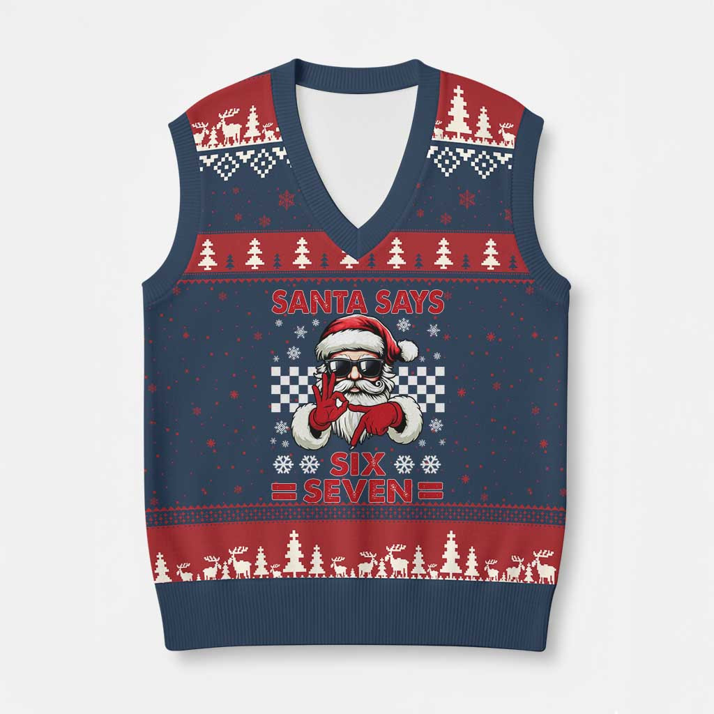 Rushgleam Santa Says 67 Ugly Christmas V-Neck Knit Sweater Vest Funny Santa Meme For Your Grandchild