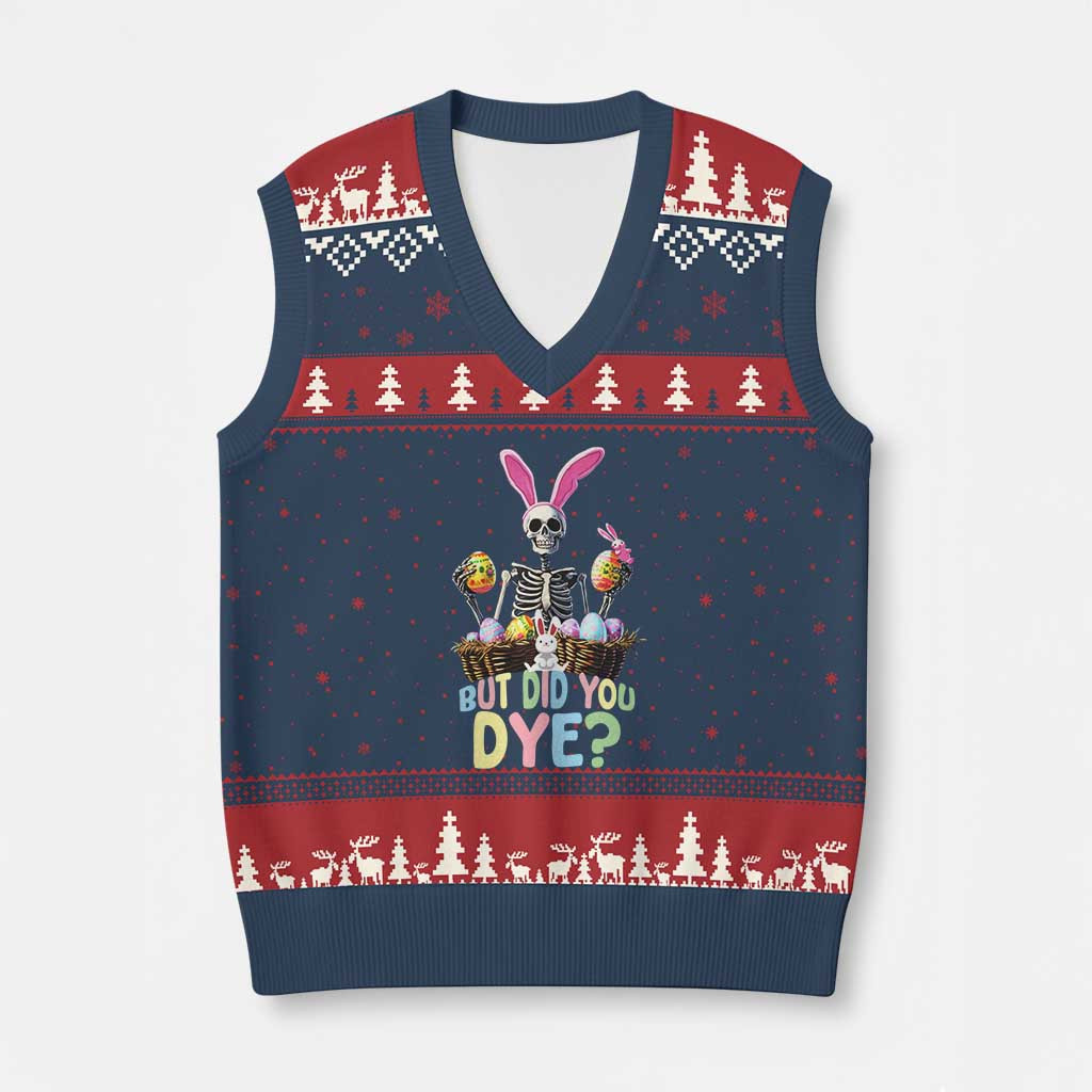 Rushgleam Skeleton Easter Ugly Christmas V-Neck Knit Sweater Vest But Did You Dye Funny Gift For Girl