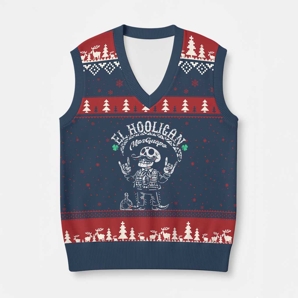 Rushgleam Skeleton El Hooligan Ugly Christmas V-Neck Knit Sweater Vest Gift For Teens Love Skeleton