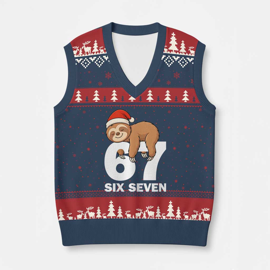 Rushgleam Sloth 67 Six Seven Ugly Christmas V-Neck Knit Sweater Vest Funny Sloth Xmas Gift For Wife
