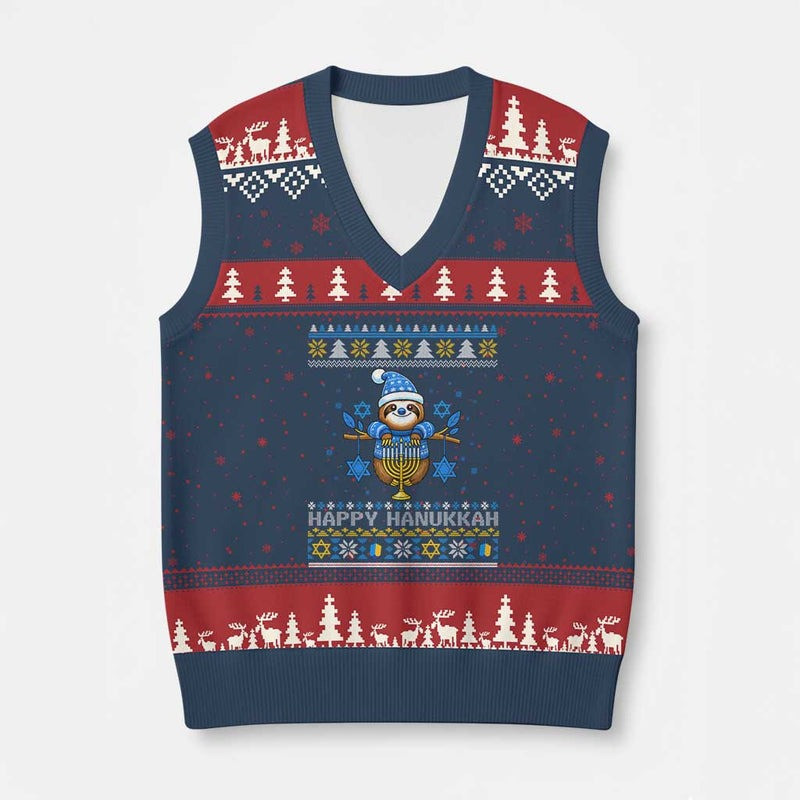 Rushgleam Sloth Happy Hanukkah Ugly Christmas V-Neck Sweater Knit Sweater Vest Funny Sloth Gift