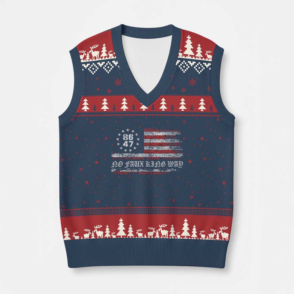 Rushgleam Snarky No Kings In America Ugly Christmas V-Neck Sweater Vest No Faux King Way Xmas Sweater