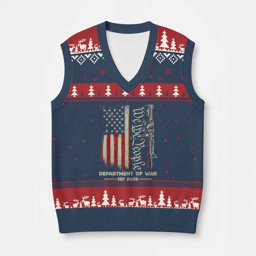Rushgleam We The People Ugly Christmas V-Neck Knit Sweater Vest Department Of War 2025 Gift For Dad