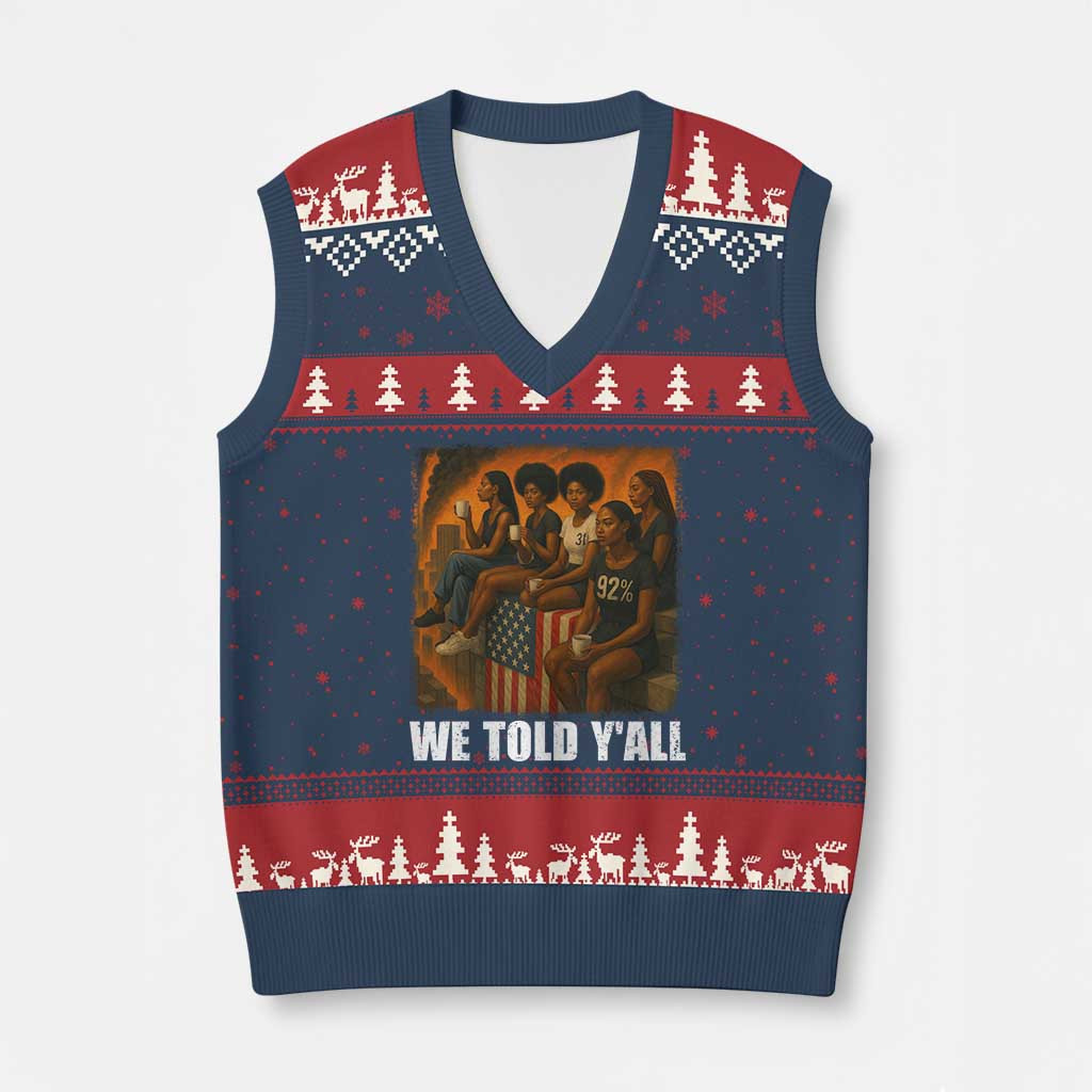 Rushgleam We Told Y’all Ugly Christmas V-Neck Knit Sweater Vest Black Women Empowerment Gift For Nana