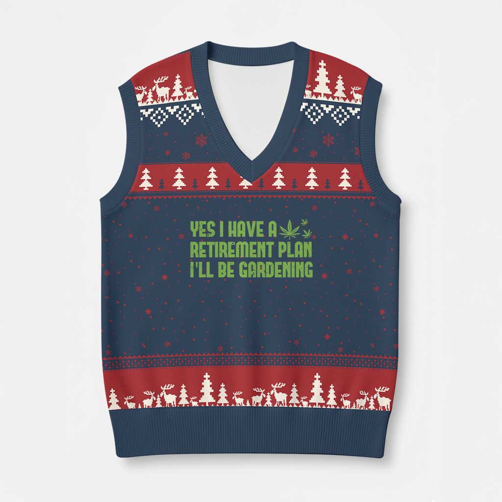 Rushgleam Weed Retirement Plan Ugly Christmas V-Neck Knit Sweater Vest Gardening Lover Best Gift