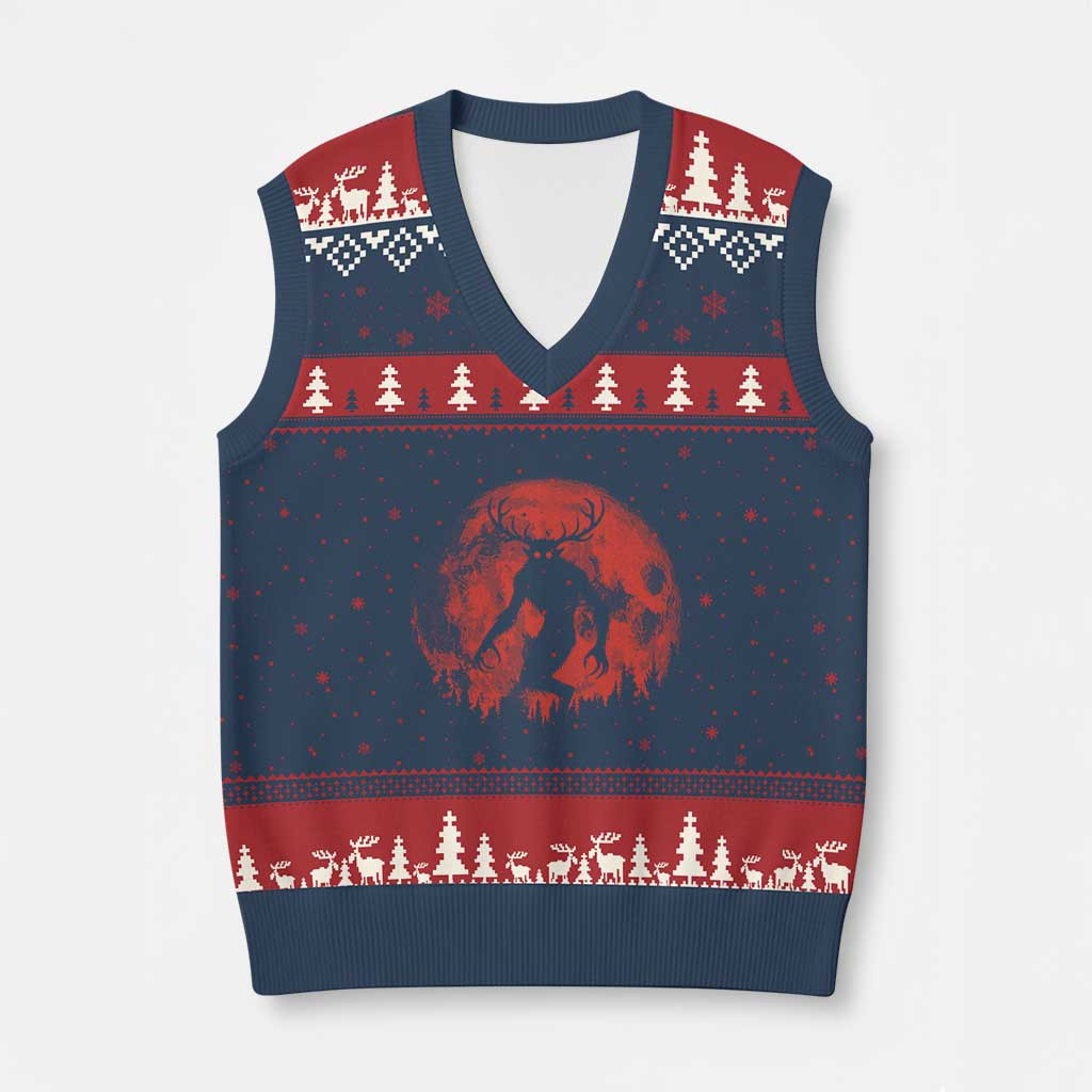 Rushgleam Wendigo Monster Ugly Christmas V-Neck Sweater Vest Skinwalker Night Stroll Xmas Clothing