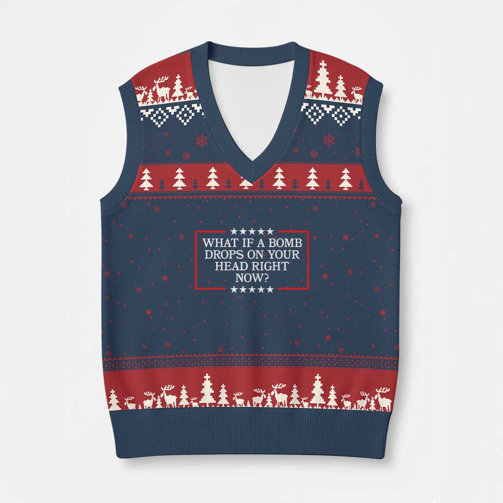 Rushgleam What If A Bomb Drops On Your Head Ugly Christmas V-Neck Sweater Vest Trump 47 Xmas Clothes