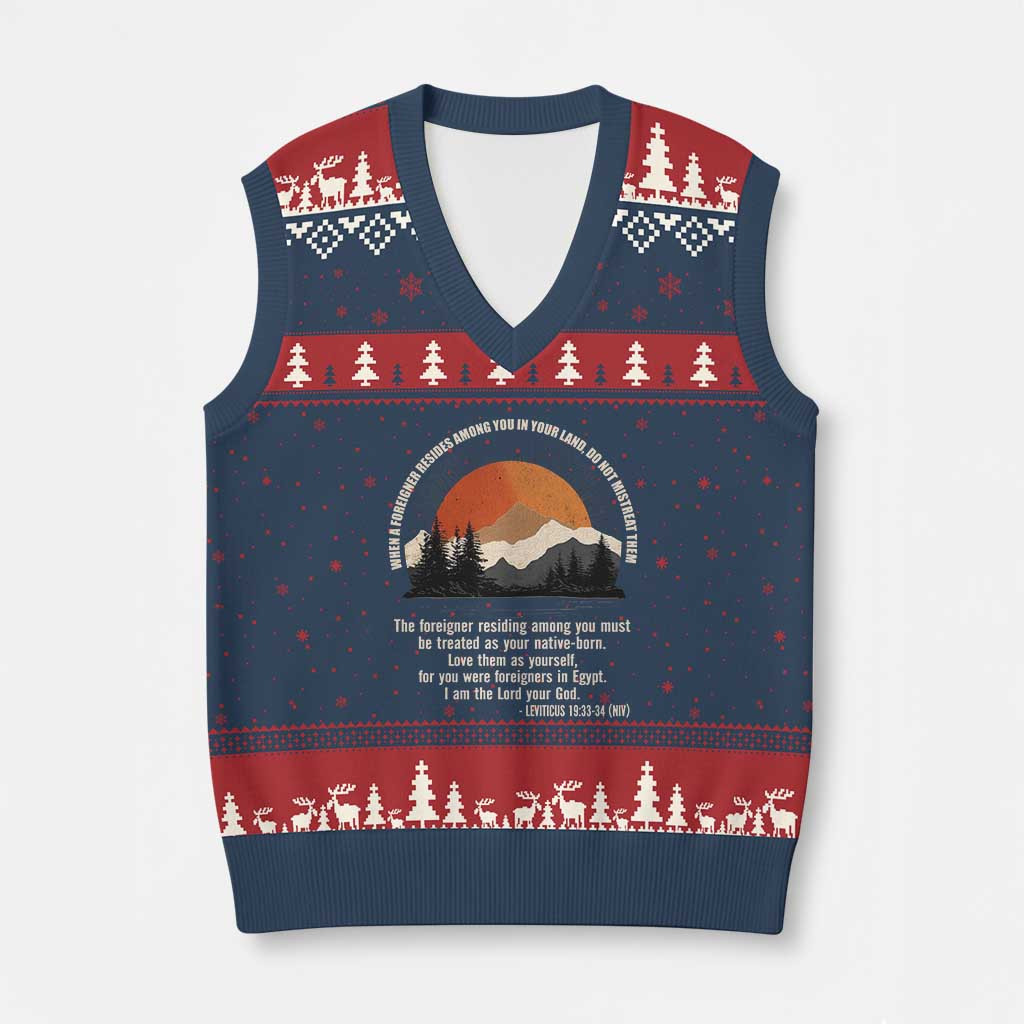 Rushgleam When A Foreigner Resides Ugly Christmas V-Neck Sweater Vest Leviticus Bible Xmas Clothing