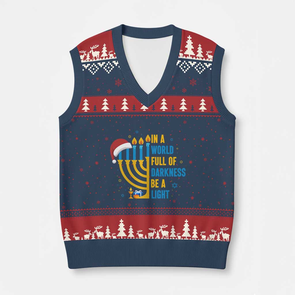 Rushgleam World Full Of Darkness Ugly Christmas V-Neck Knit Sweater Vest Interfaith Family Xmas Sweater