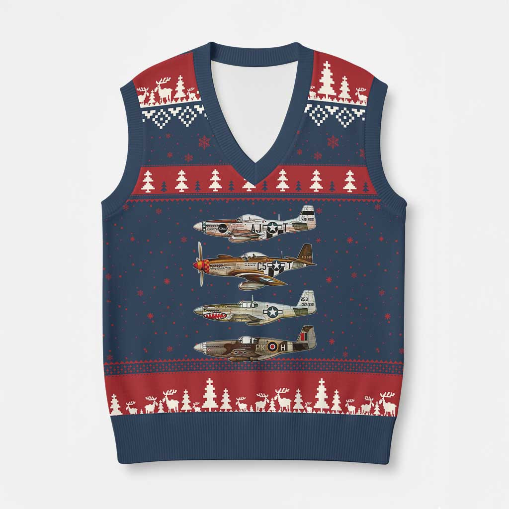 Rushgleam WW2 Warplanes B-17 Ugly Christmas V-Neck Sweater Vest Vintage Wwii Fighter Christmas Clothing