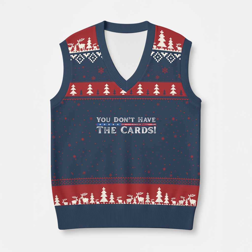 Rushgleam You Don’T Have The Cards Ugly Christmas V-Neck Sweater Vest Trump Saying Stars Xmas Sweater