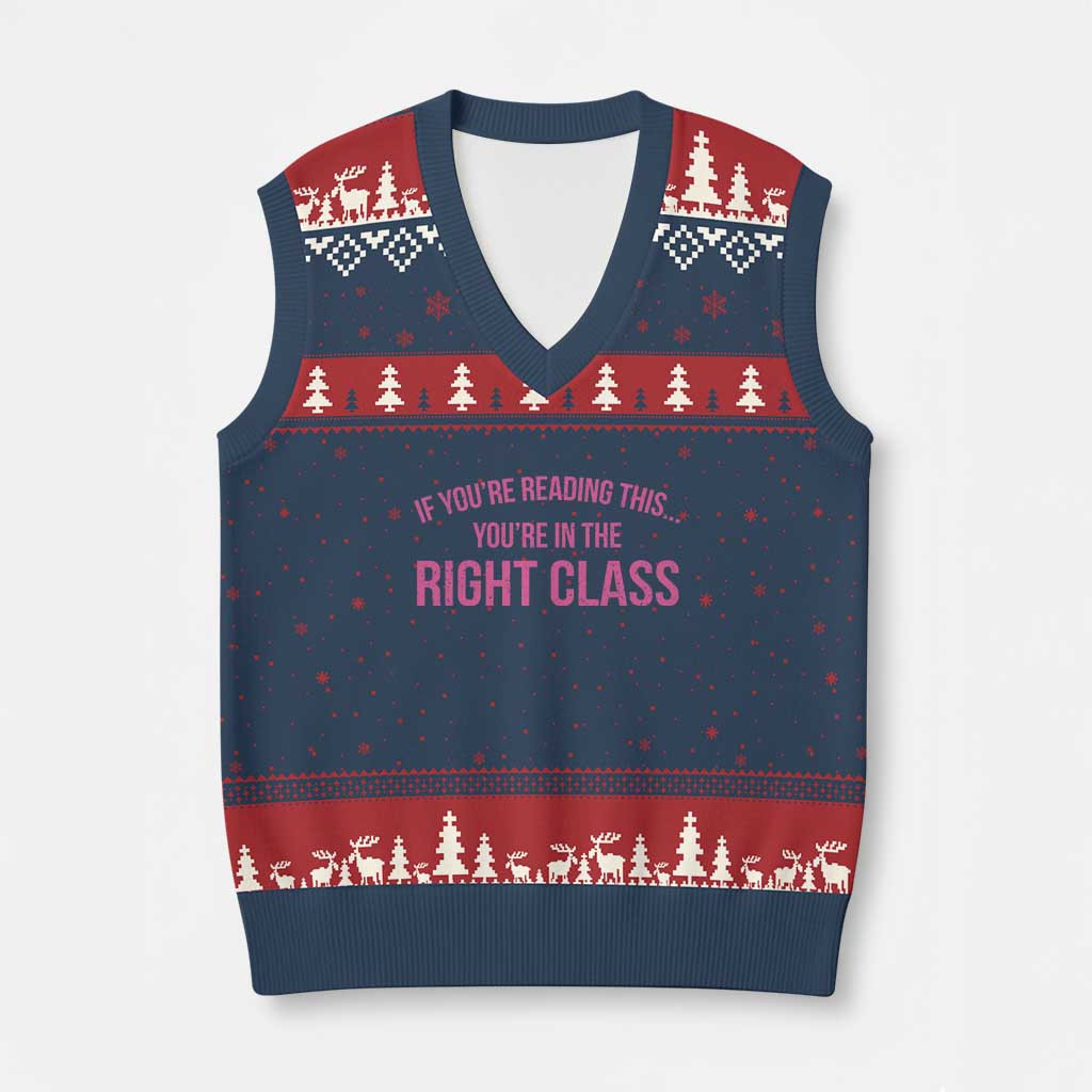 Rushgleam You’re In The Right Class Ugly Christmas V-Neck Knit Sweater Back To School Teacher Gift