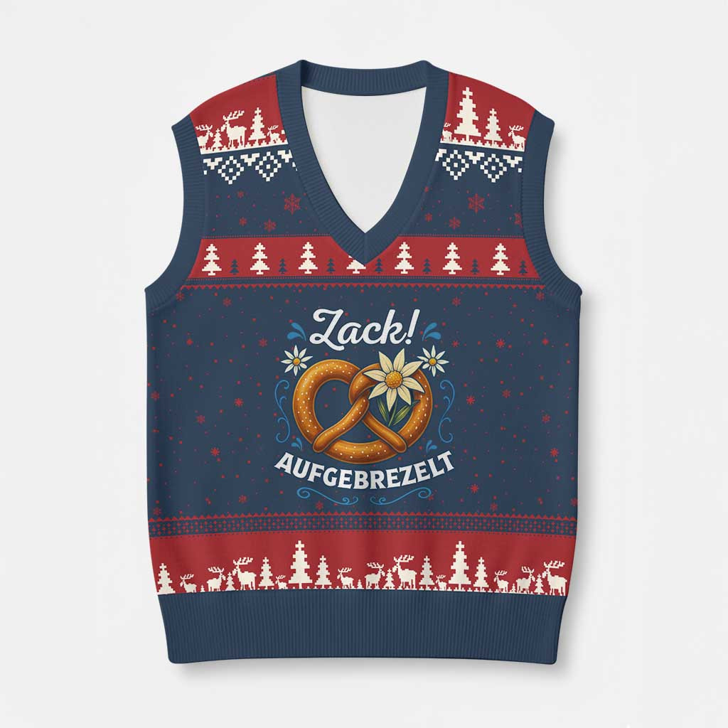 Rushgleam Zack Aufgebrezelt Oktoberfest Ugly Christmas V-Neck Sweater Vest Funny Bavarian Xmas Clothes