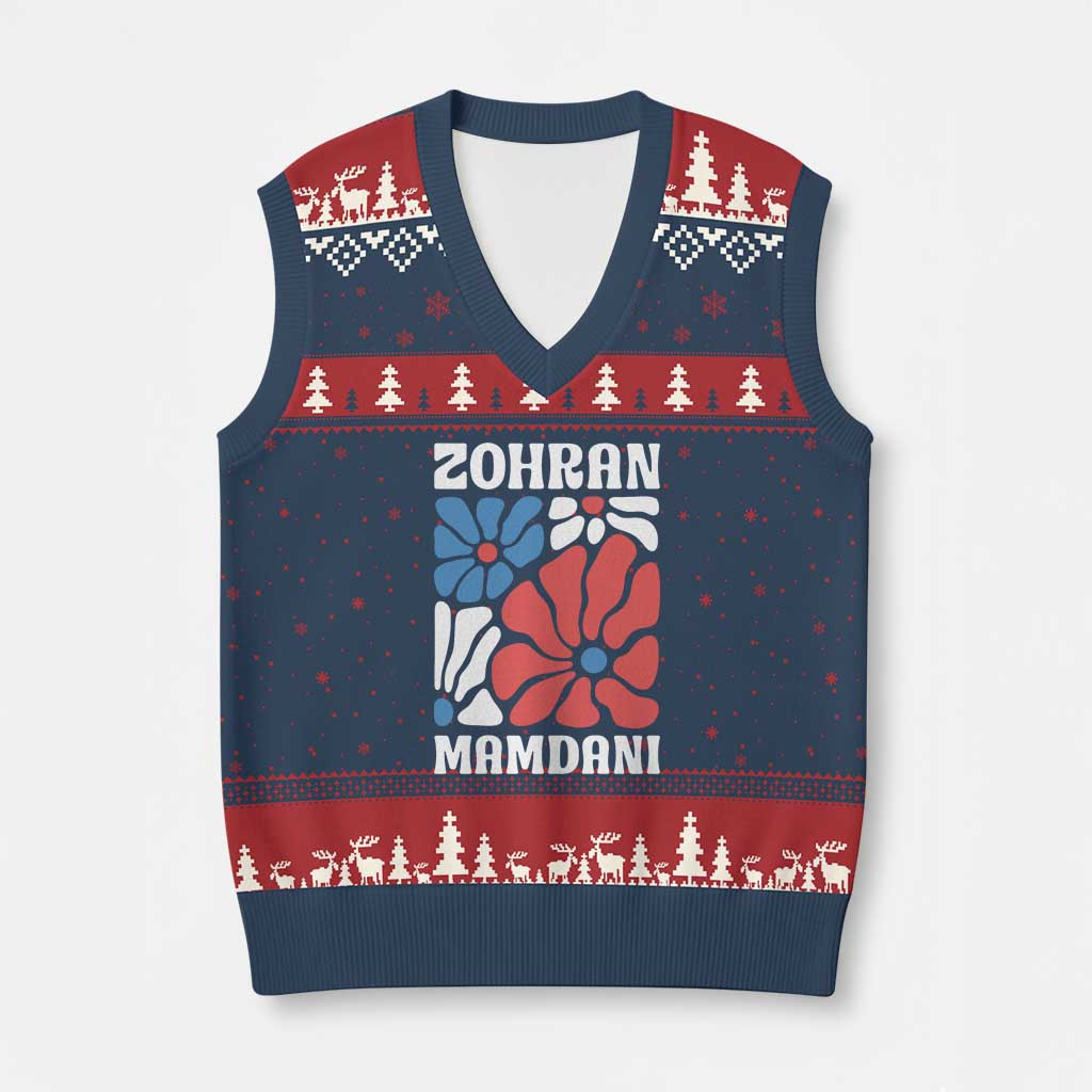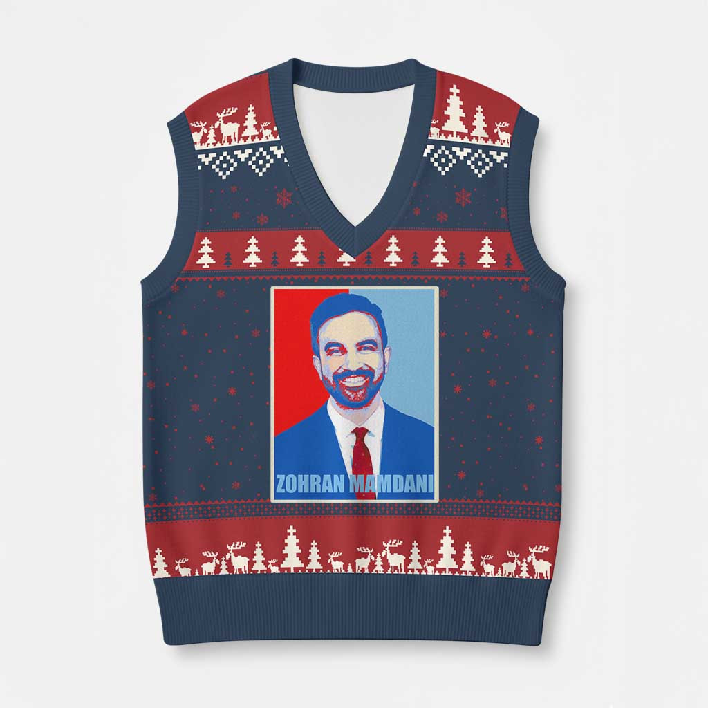 Rushgleam Zohran Madamni Ugly Christmas V-Neck Sweater Vest For New York Mayor Xmas Clothing