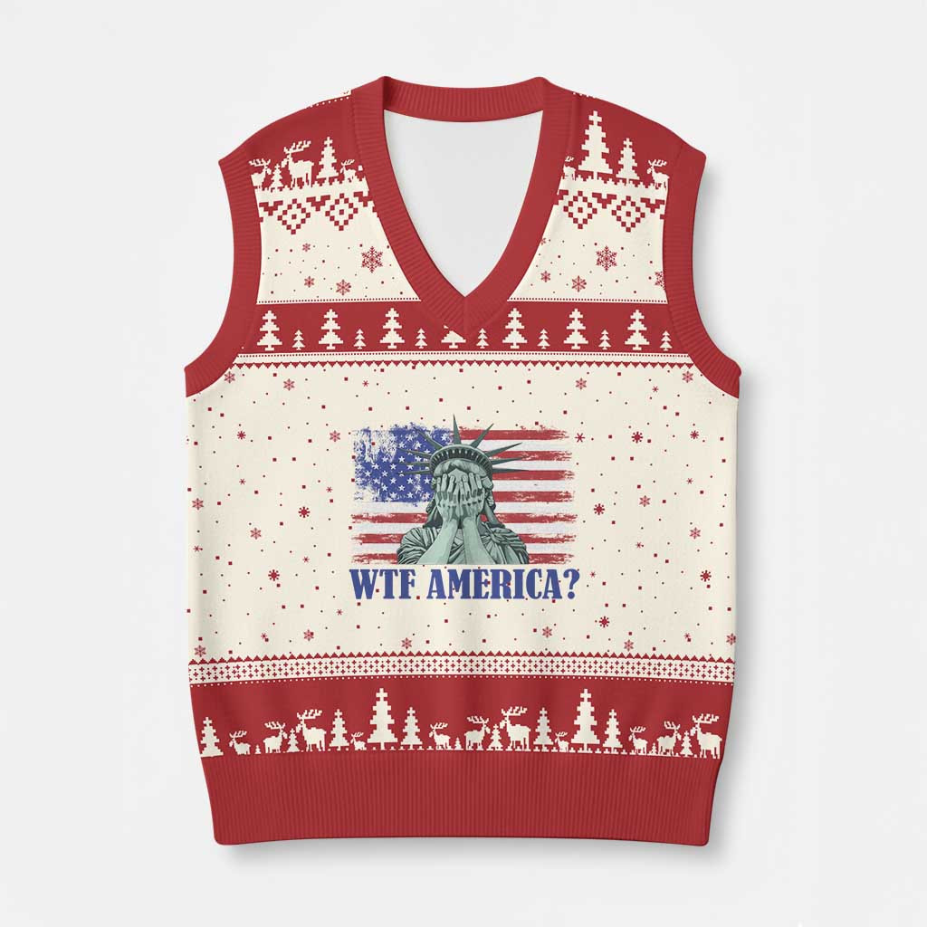 Rushgleam American Ugly Christmas V-Neck Knit Sweater Vest Statue Liberty WTF Satire Gift For Couples