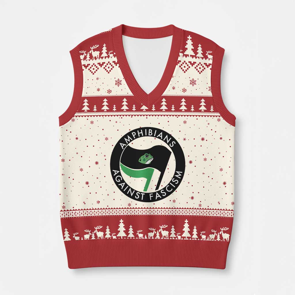 Rushgleam Amphibians Against Fascism Ugly Christmas V-Neck Knit Sweater Portland Protest Man Gift
