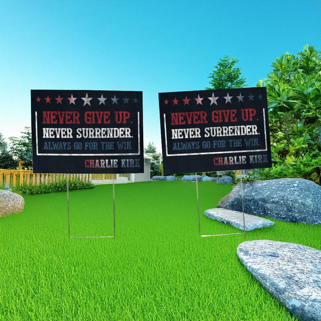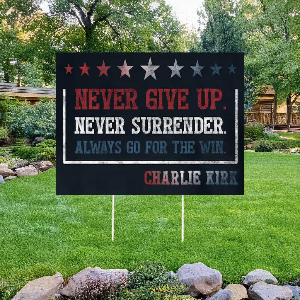 RIP Charlie Kirk Yard Sign Never Give Up Never Surrender Lawn Sign Charlie Kirk Merch