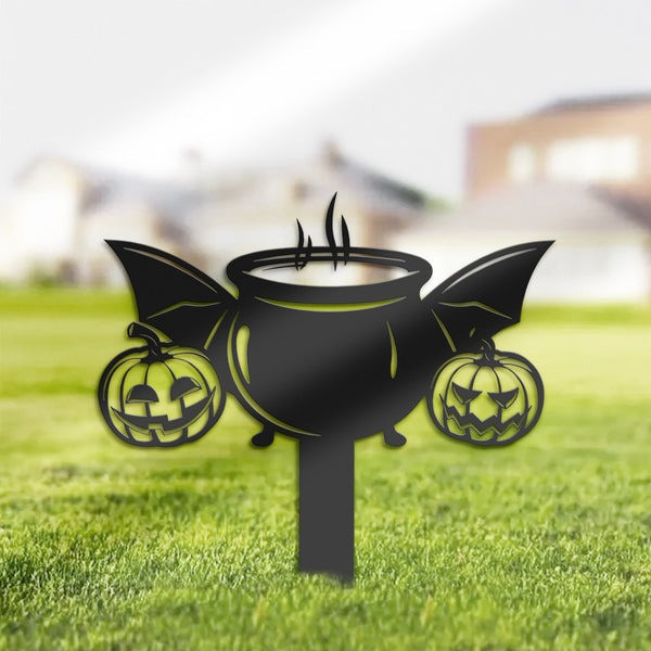 Rushgleam Halloween Bat Metal Yard Signs Pumpkins Cauldron Outdoor Decoration Halloween Gifts