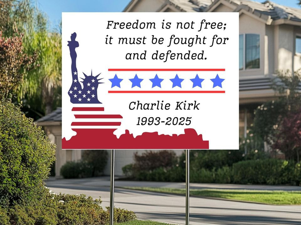 Charlie Kirk Freedom Yard Sign Eagle USA Flag Great American Patriot TPUSA Merch