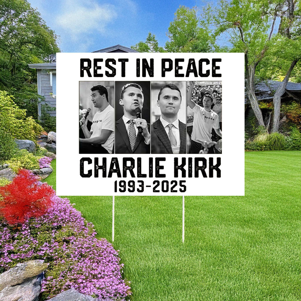$34.95 – $126.95Price range: $34.95 through $126.95Rest In Peace Charlie Kirk Yard Sign American Flag Outdoor Display Charlie Kirk Merch