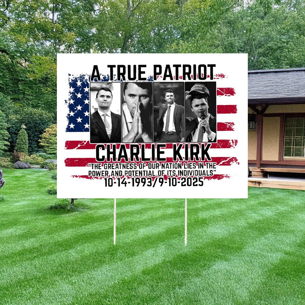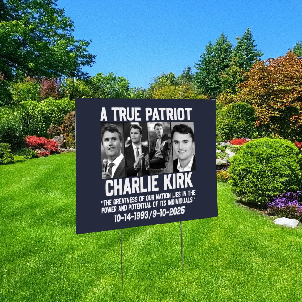 $34.95 – $126.95Price range: $34.95 through $126.95RIP Charlie Kirk A True Patriot 2025 Yard Sign Charlie Kirk Merch Garden Decor